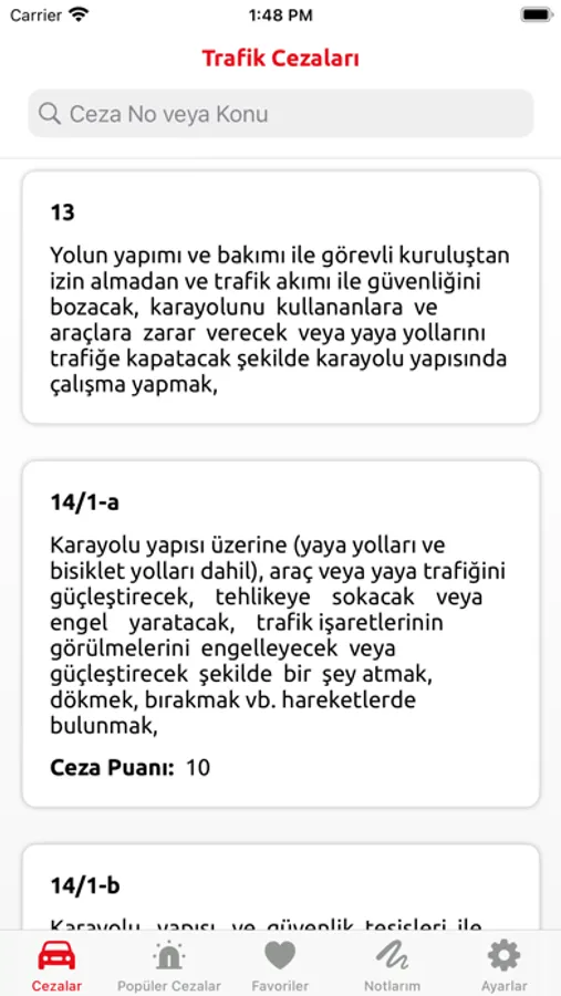 Bu uygulama sayesinde 2023 yılına ait trafik cezalarını görebilir, arama yapabilir , favorilerinize ekleyebilir - çıkarabilir ve notlarınızı alabilirsiniz.