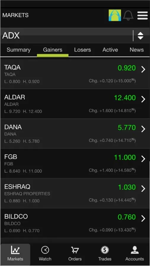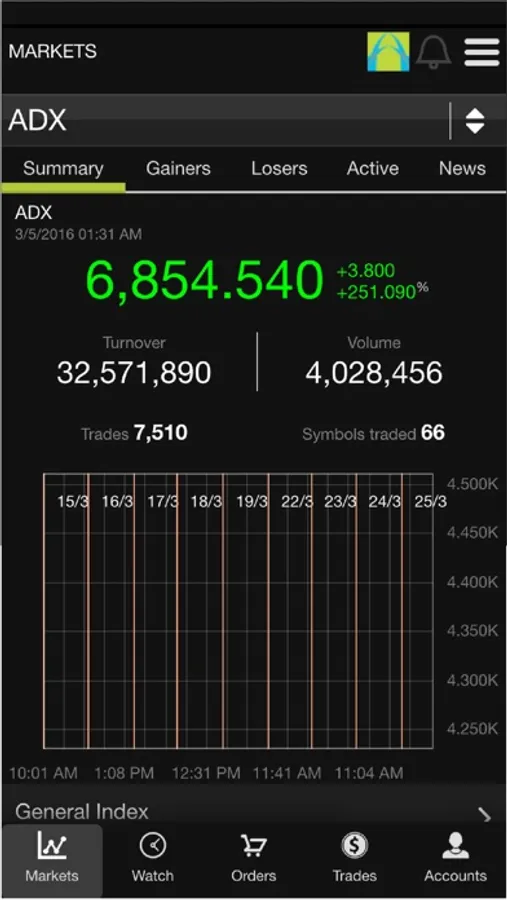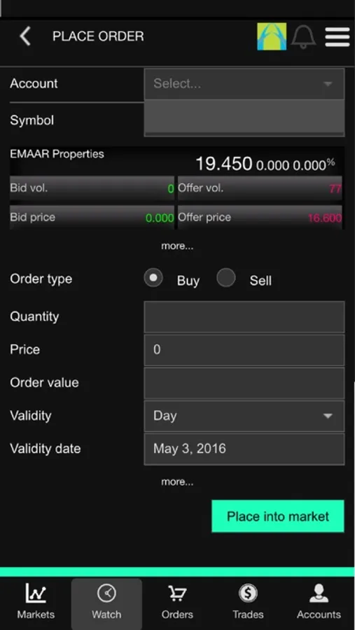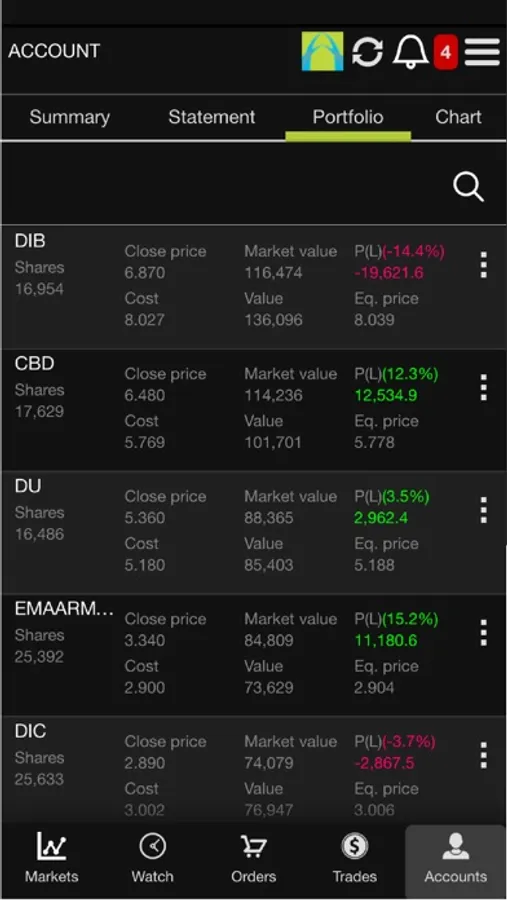 Commercial Bank of Dubai Financial Services (CBDFS) Mobile Trading Application for trading securities in Dubai Financial Market (DFM) and Abu Dhabi Exchange (ADX).