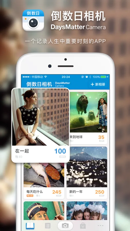 「倒数日相机」是一个专门帮助你记录生活中重要时刻照片的 App,让你从繁杂的照片库中记录下「在一起第 100 天的照片」、「宝宝出生每一天的照片」以及「新一年第 XXX 天的照片」,加上风格丰富的倒数日贴纸,轻松创造出最有纪念意义的照片相册。