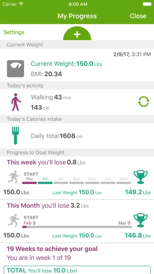 Get moving - Personalized fitness plan with your goal weight in mind