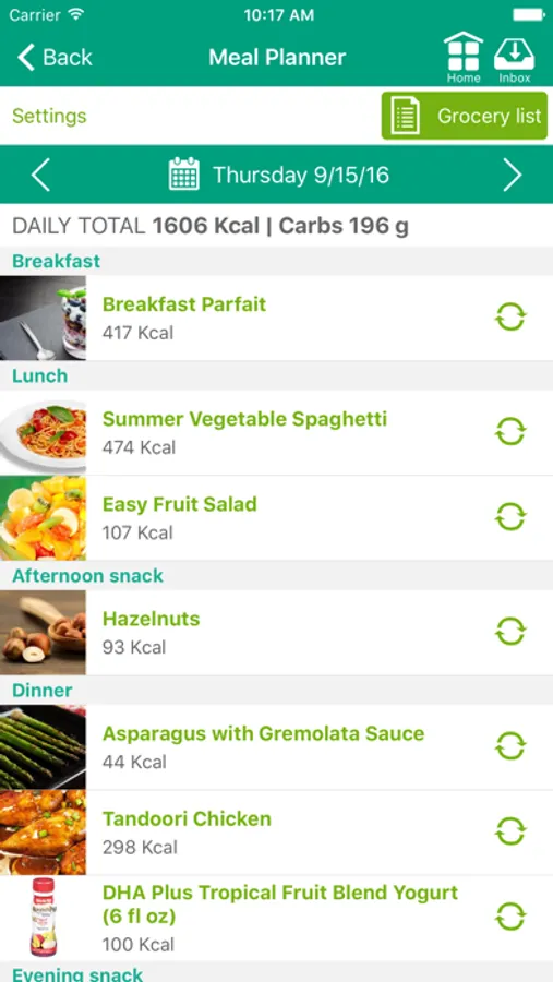 • Automatic 7 day personalized Meal Plan