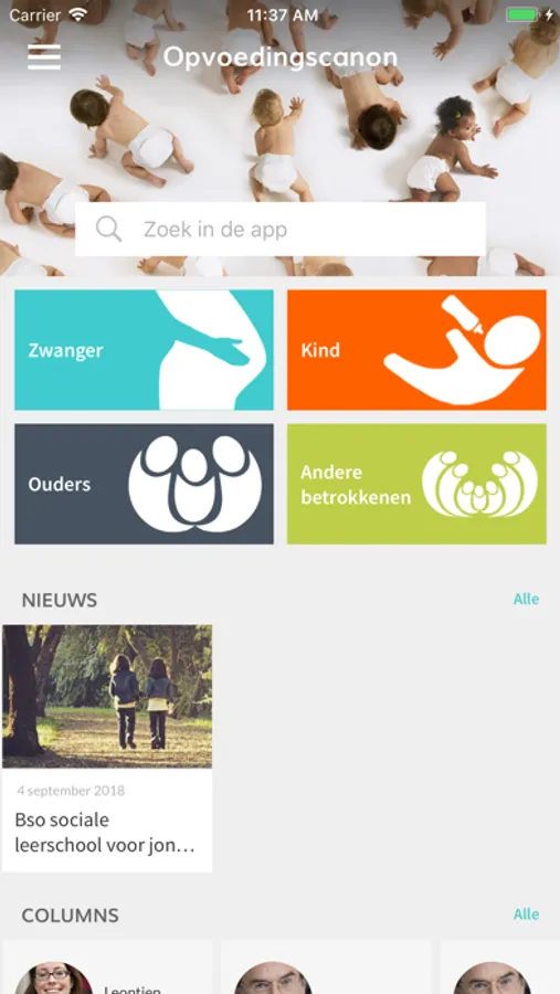 De Opvoedcanon app biedt ouders met jonge kinderen (zwangerschap tot vier jaar) steun bij de opvoeding en ontwikkeling van hun kinderen. Deze informatie is samengesteld met diverse professionals uit het veld en ouders.