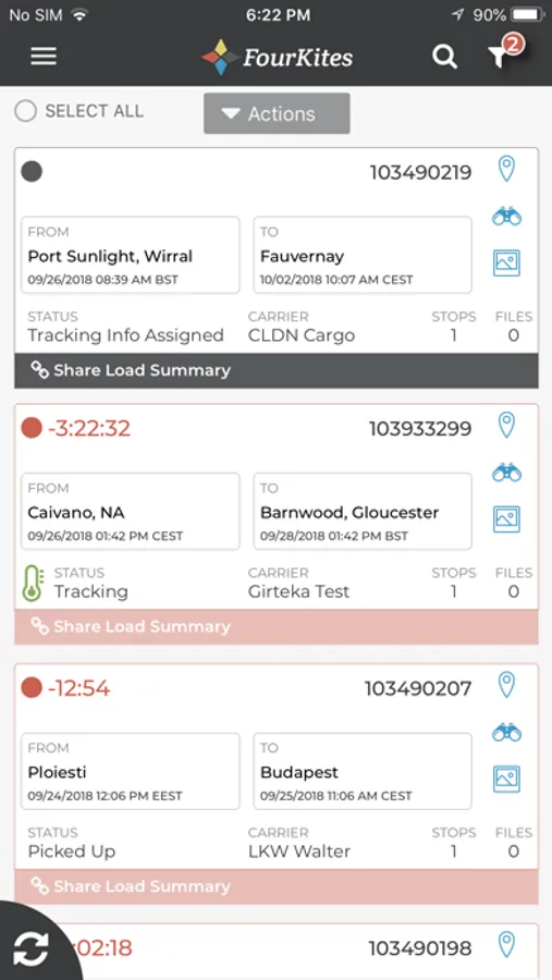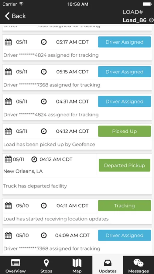 • Keep track of tracking updates for your loads