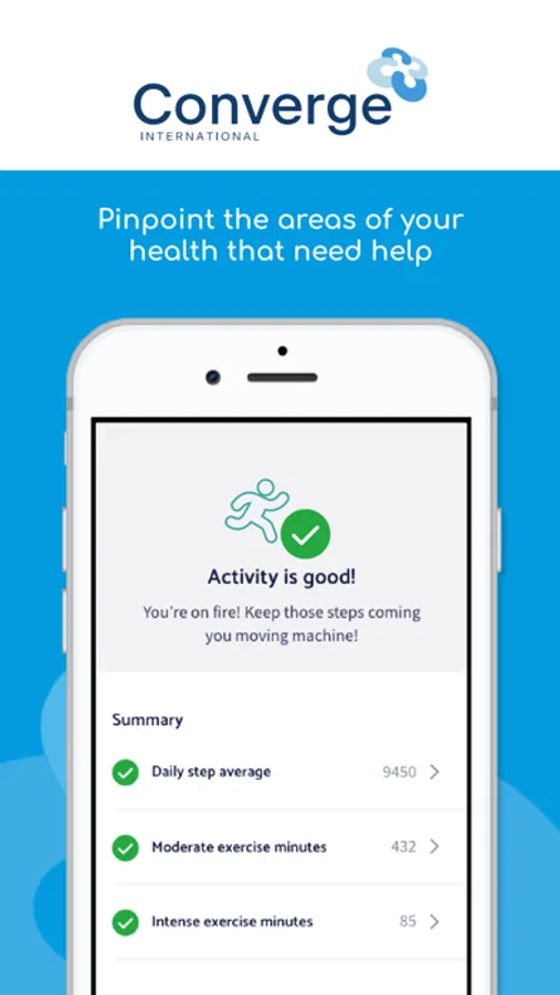 - Integration with your fitness tracker to see your daily steps and exercise and set goals that matter to you