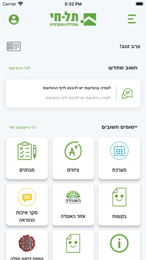 האפליקציה הסלולרית החדשה של המכללה האקדמית תל-חי, מכילה מגוון שירותים, כגון: