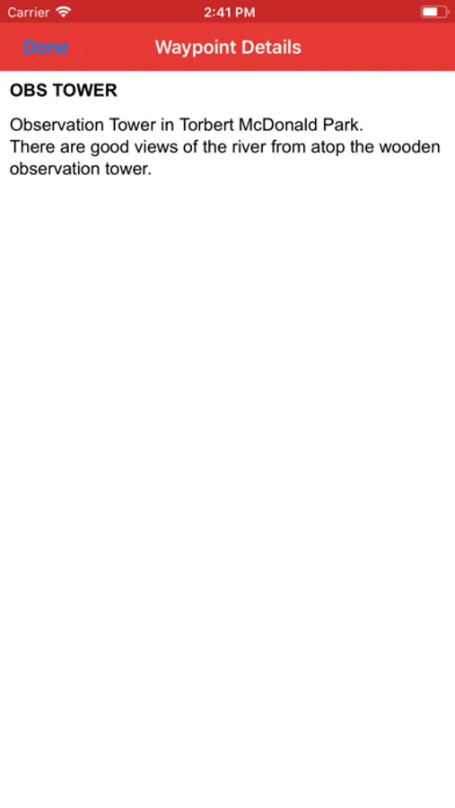 —>Tap on waypoint then click on info icon, if waypoint contains Description,email id,url links,phone numbers etc, will be displayed on the description page.