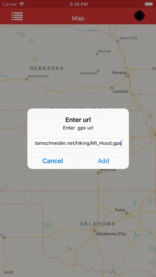 —>Click on “Add through link” Icon on Menu bar enter .gpx files link to add the files in to the application.