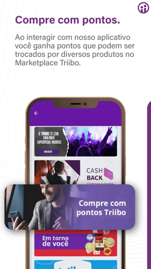 Interagindo com aplicativo você ganha pontos e concorre a diversos prêmios. Com os seus pontos, você pode trocar por diversos produtos no Marketplace Triibo ou no seu estabelecimento favorito. Basta acessar o card “compre com pontos” no aplicativo e verificar se você já possui pontos suficientes para trocar por algum produto.
