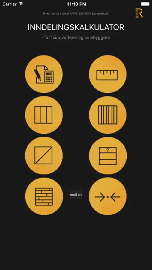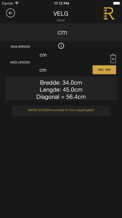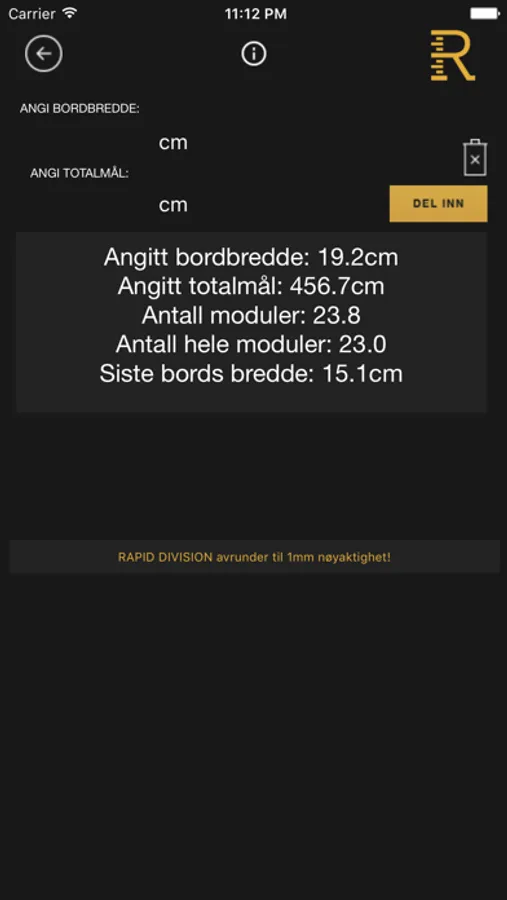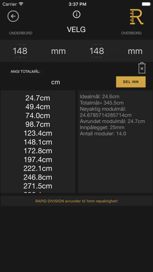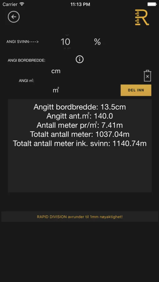 "Rapid Division" er en inndelingskalkulator for håndverkere og selvbyggere. Godt egnet til alt som skal deles inn i metrisk måleenhet.