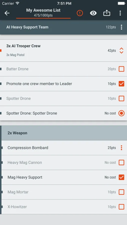 • Quickly create rosters and experiment with new army list ideas
