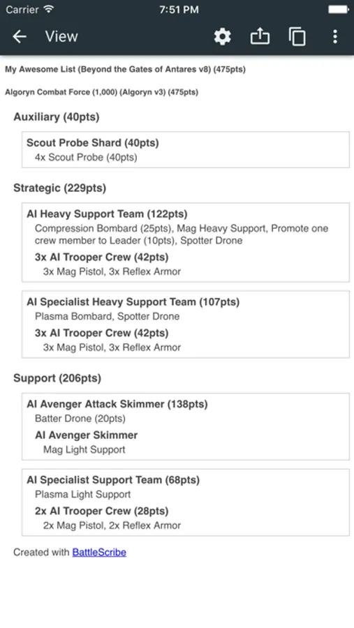 Create, view and share army lists for a wide range of game systems using data files created and maintained by an active community of BattleScribe users.