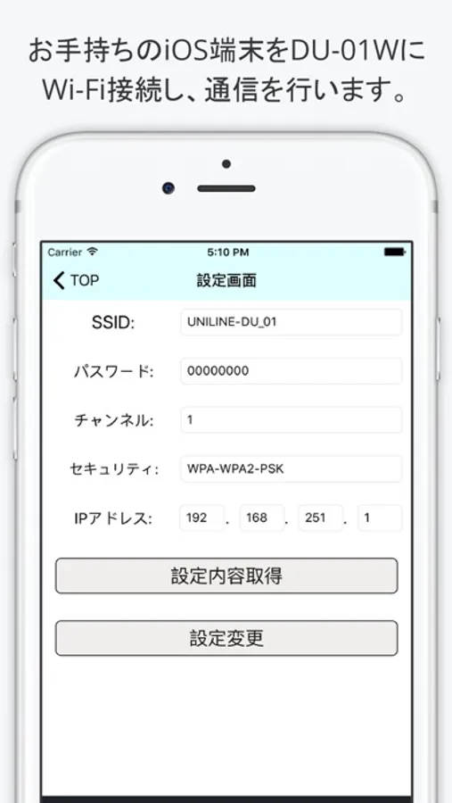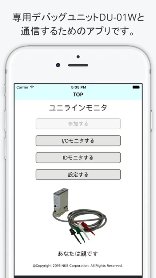 本アプリは、専用デバッグユニット「DU-01W」と通信し、ユニラインのI/Oモニタ、IDモニタなどができるアプリです。