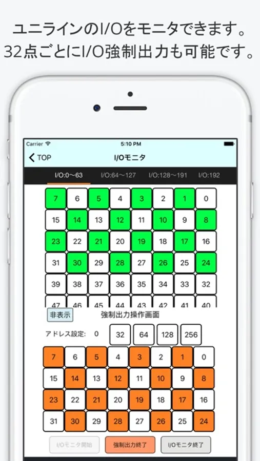 また、強制出力操作画面を操作することで、I/O強制出力が可能です。