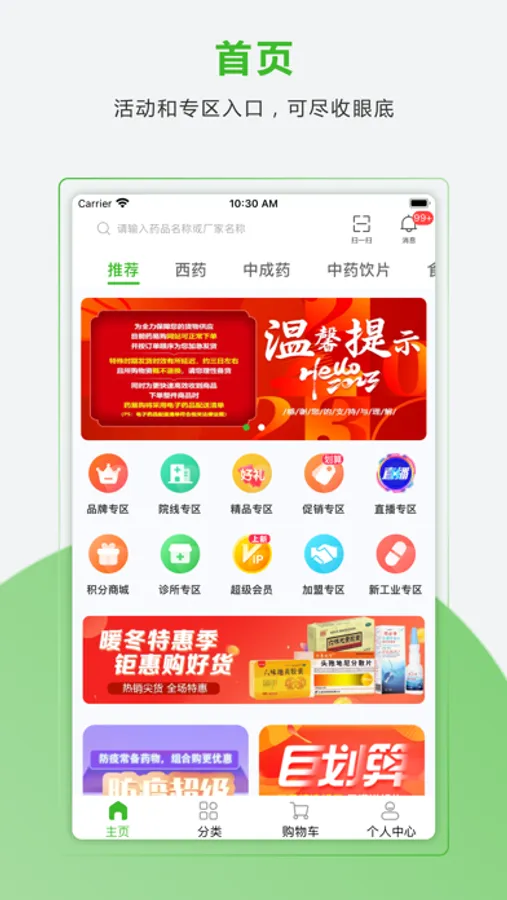 主要经营西药、中成药、OTC、医疗器械、中药饮片、保健品、食品、化学药、生物制品等10多个品类;平台强化虚拟网络与实体物流体系相结合致力于为零售终端打造一键式便捷网络采购服务,在线上订单、在线支付、集中仓储、线下配送的电子商务交易方式基础上,实现了智能采购、品种智能比价等创新功能。为您提供最有价值的医药服务,保证您的货款安全和药品质量,竭诚为您的采购和销售保驾护航。