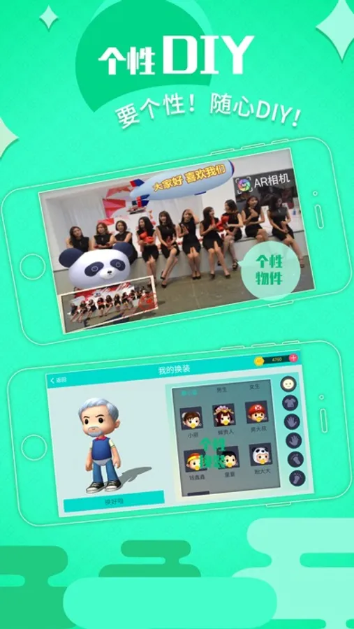 在《AR相机》中定制自己的虚拟形象,换装,摆POSE,一起合影。