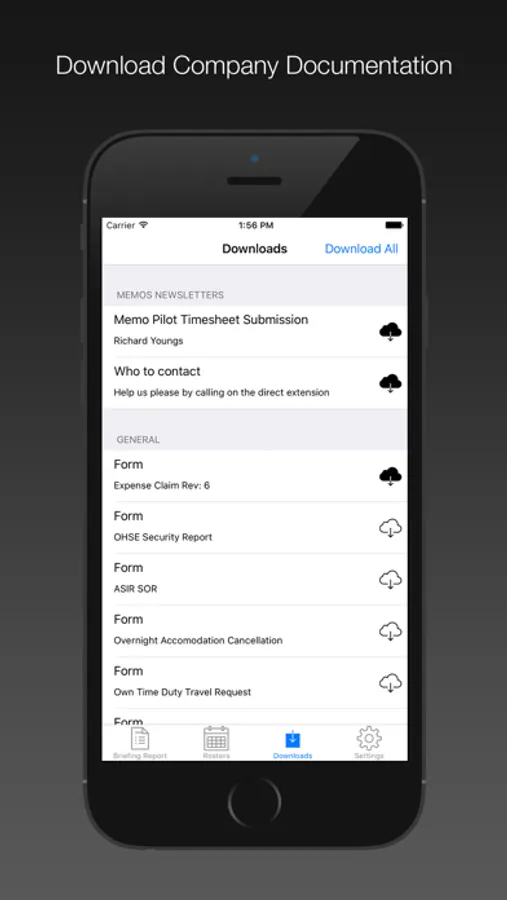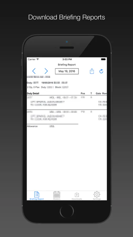 Download your briefing report, rosters and company documentation directly to your iPhone or iPad and view them at any time online or offline.