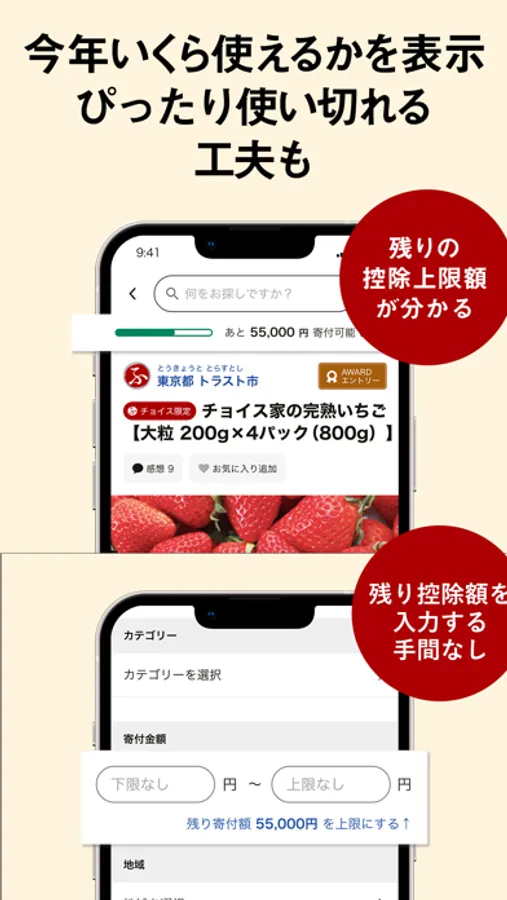 ・絞込み検索機能では、残り寄付金額をワンタップでセットするから入力する手間なし