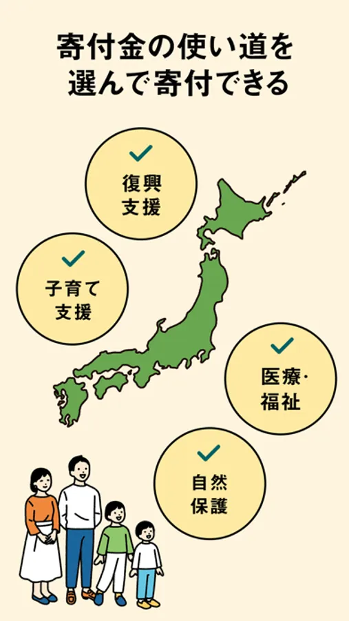 詳しくはふるさとチョイスアプリ内のメニュー「ふるさと納税とは」内に掲載しています。