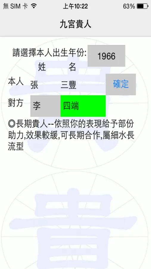 依照自己與對方的姓名,算出對方的貴人關係.共分7種