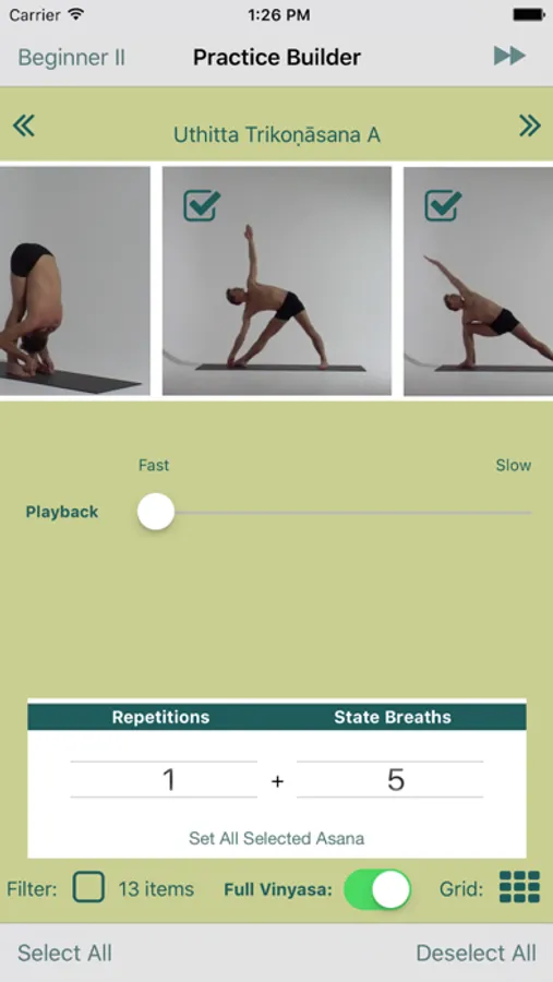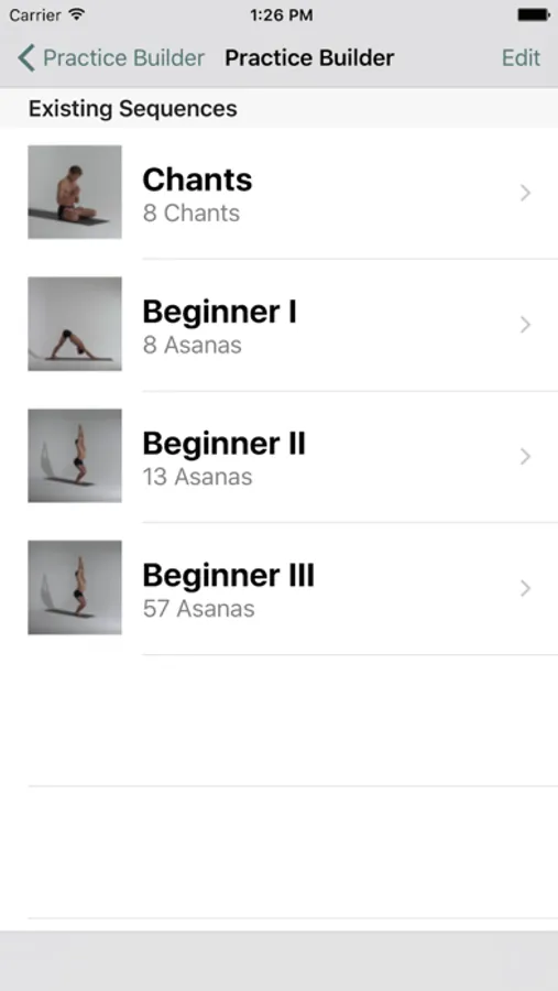 The Practice Builder comes with 3 predefined Beginner Sequences as given to us directly by John and you can also add and modify up to 10 individual sequences of your own.