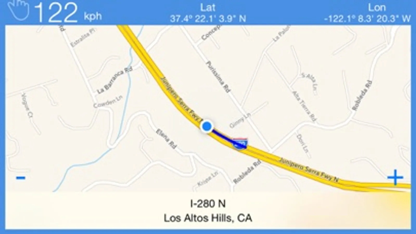 It shows the user’s current speed in miles, kilometers or knots, but also his current GPS Coordinates, location and even the street where he is at any given moment.