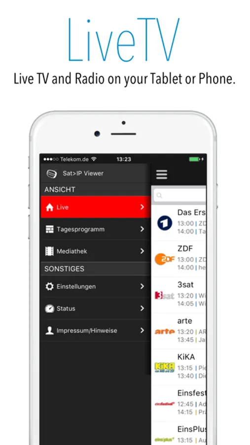Turn your phone or tablet into a television! With this app and a Sat>IP