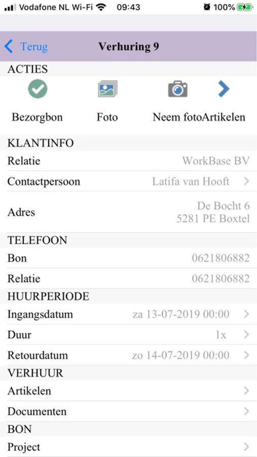 Bezorg- en haal bonnen gemaakt met de verhuurmodule van workBase zijn nu te gebruiken in de App.