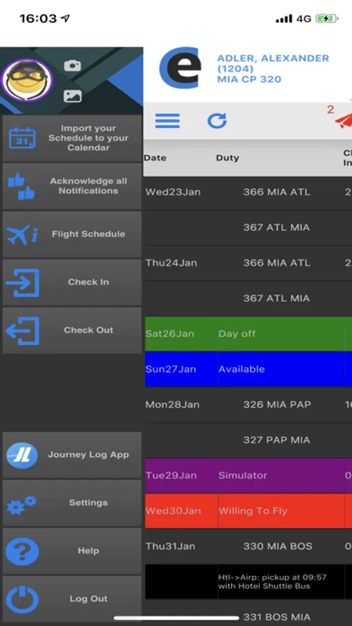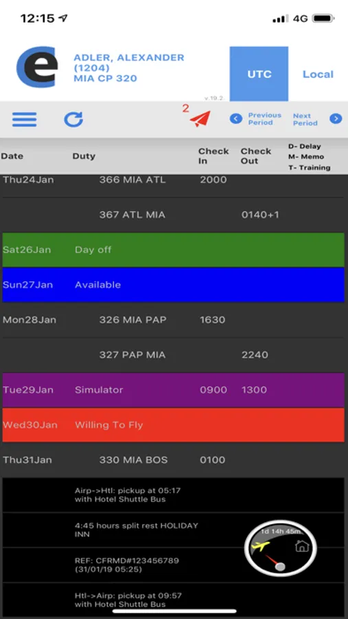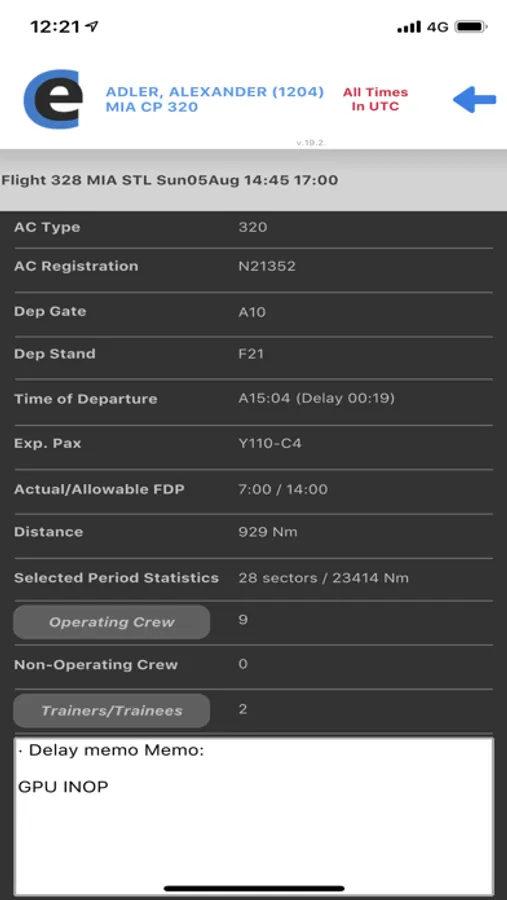 - Memo indicators ( including actual memo text assigned to the flight/duty)