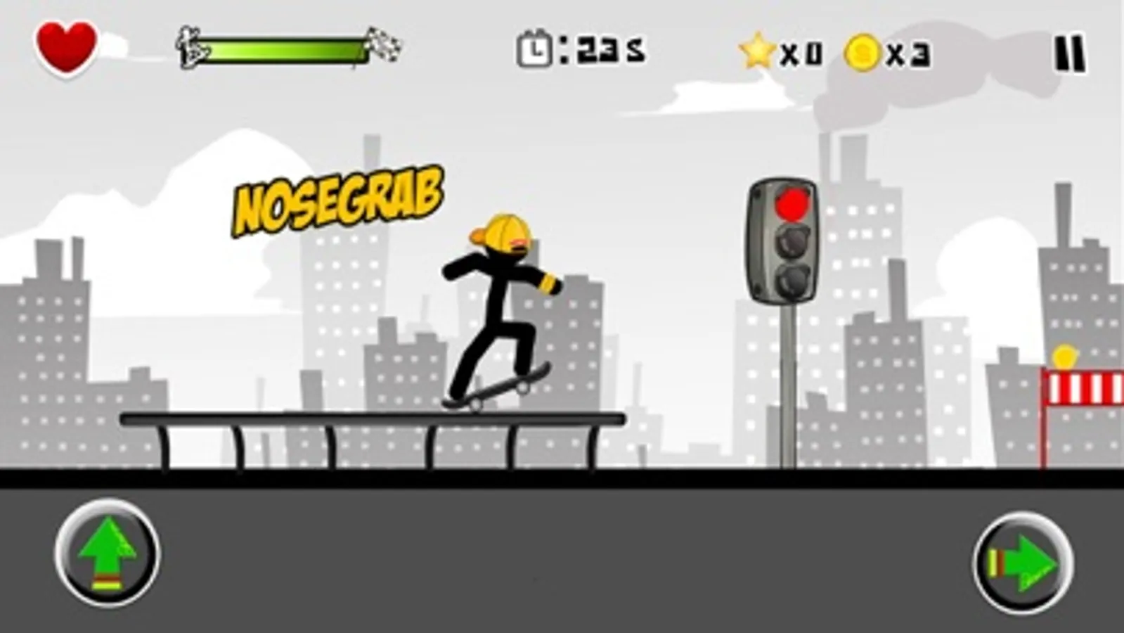 Enter the arena to become a Stickman Skater. You must ride along the city. You must realize the best tricks and the best jumps to complete each level. You also need to manage your speed.