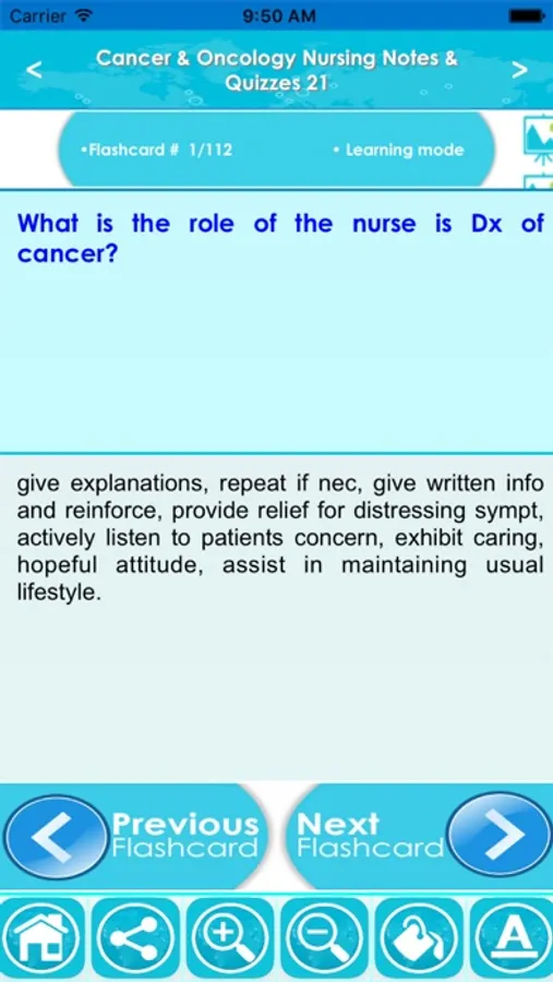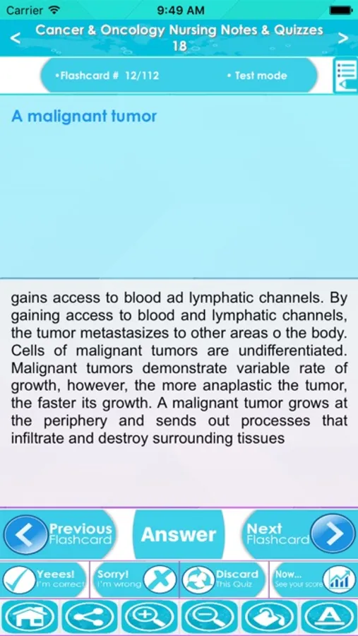 This app is a combination of sets, containing practice questions, study cards, terms & concepts for self learning & exam preparation on the topic of Cancer & Oncology Nursing.