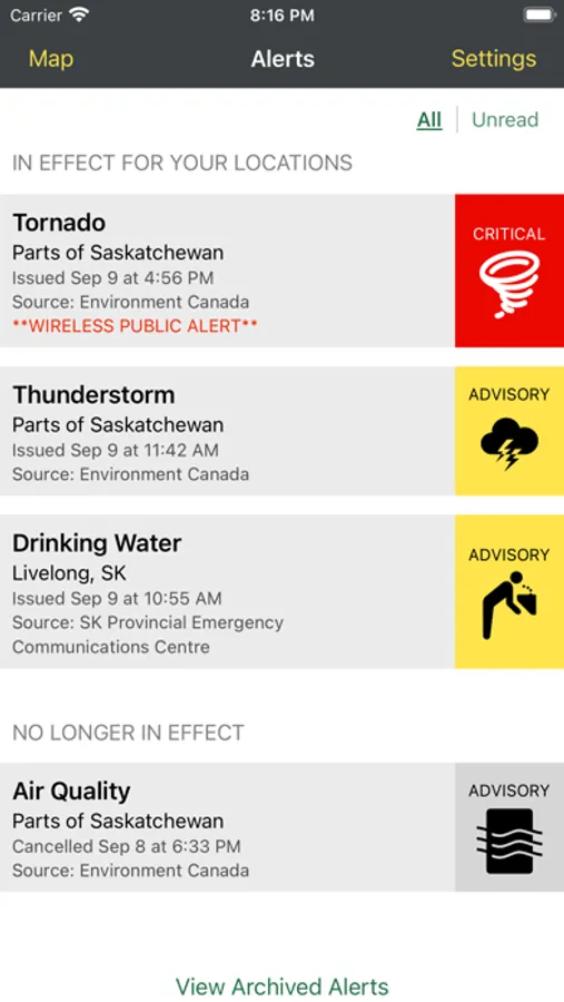 Alerts can be issued by Government of Saskatchewan ministries, crowns and agencies, local governing jurisdictions and Environment and Climate Change Canada (ECCC).