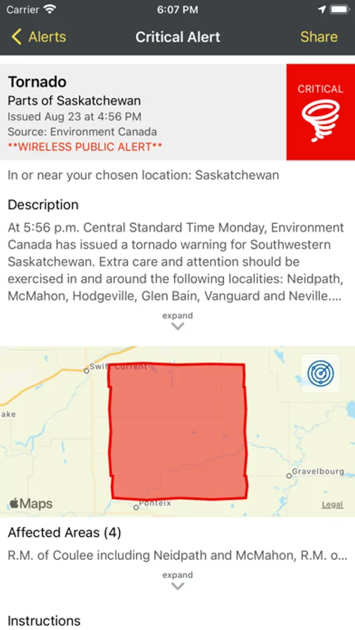 Government of Saskatchewan Ministries, Crowns, agencies of the province, local governing jurisdictions, and policing agencies issue alerts for their areas of responsibility when emergency events are occurring that have the potential to affect life and safety.