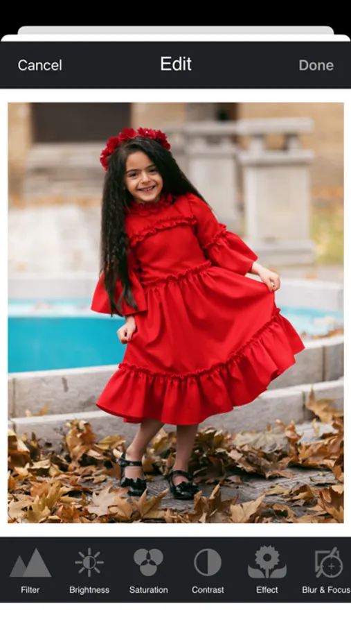 Photo Editing Tools like Filters, Effects, Adjustment, Brightness, Contrast, Saturation, Sharpness, Blur & Focus, Rotate, Crop, Resize, ToneCurve, Splash, Text (different Fonts available) and Stickers, Frames.