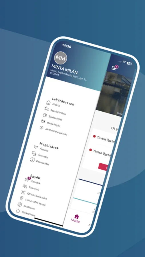 • egyéb funkciók (fiók- és ATM-kereső, postaládaüzenetek, partnerváltás, biometrikus azonosítás)