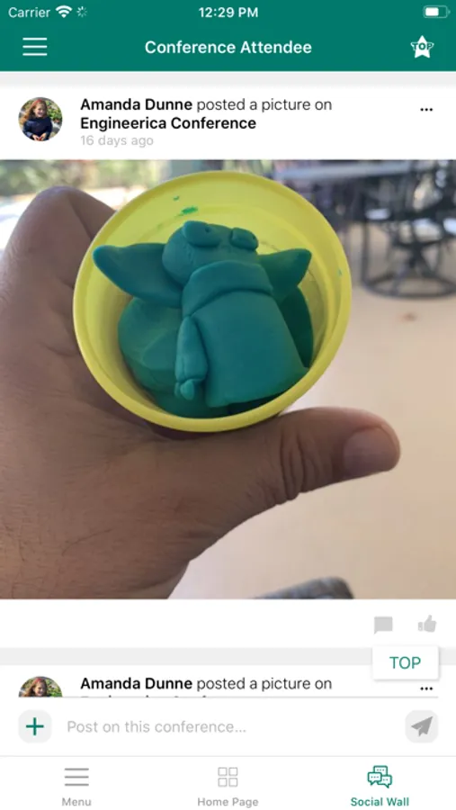 - Conference Social Network: Post notes, photos, videos and share other files. Comment and like posts.