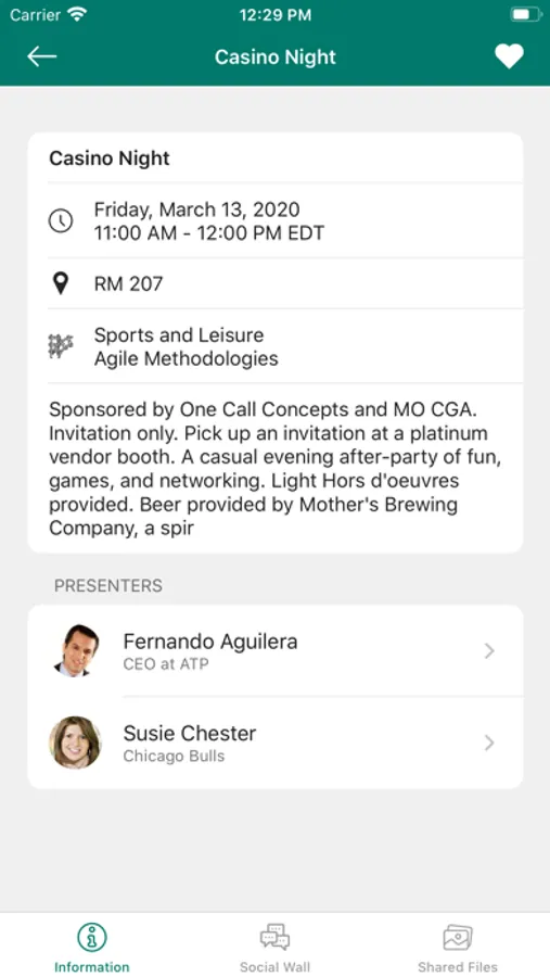 - Conference Info: view weather info, local points of interest, driving directions and conference website.