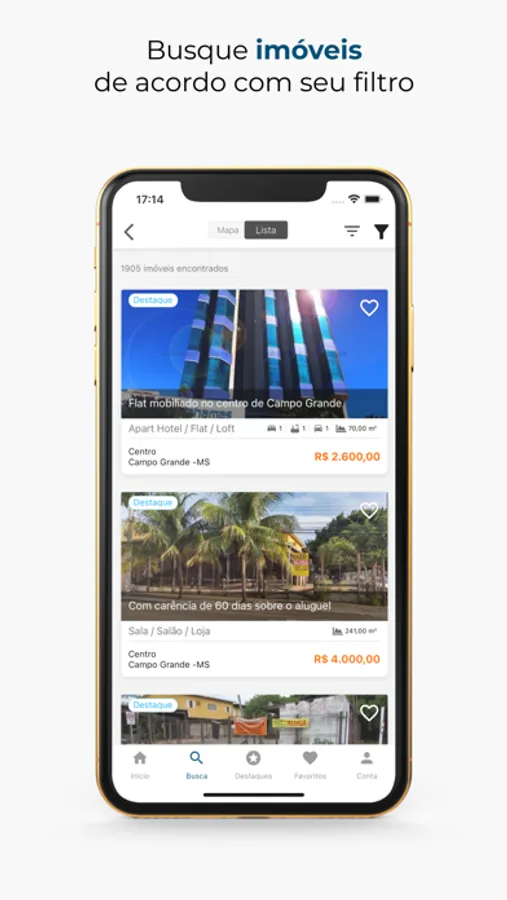 - Buscar por casas, apartamentos, imóveis comerciais, terrenos, chácaras, fazendas;