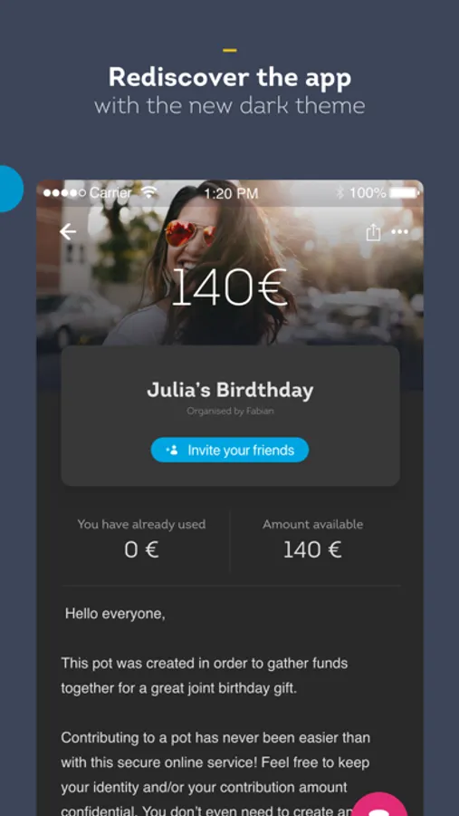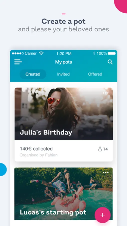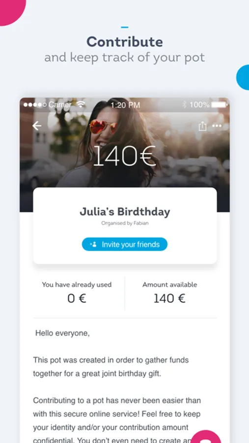 A group gift, a birthday, a farewell, a bachelor party, a weekend with friends, or other events for which "Le Pot Commun" can help you collect the contributions.