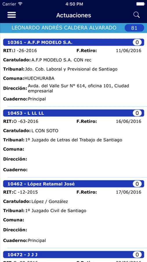 Receptores es una aplicación creada por el Poder Judicial de Chile para los trabajadores que se desempeñan como receptores, permitiéndoles optimizar su trabajo en terreno, ya que esta herramienta facilita la gestión de sus actividades directamente desde su iPhone: