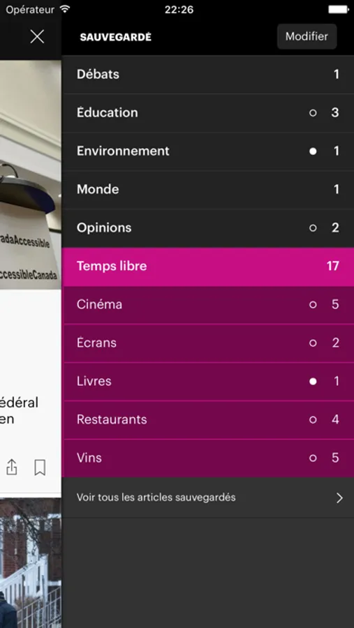 • Sauvegarde illimitée des articles, qui sont colligés puis classés selon les différentes sections du menu pour une lecture plus efficace.