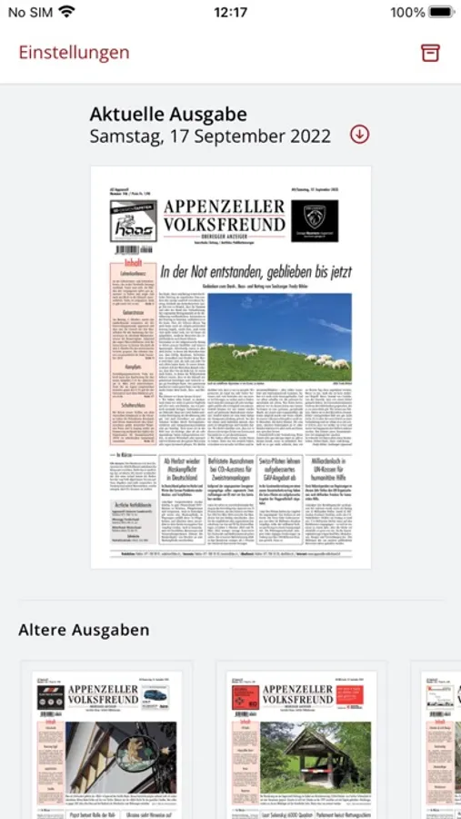„Appenzeller Volksfreund“ Einzelausgabe für CHF 3,00