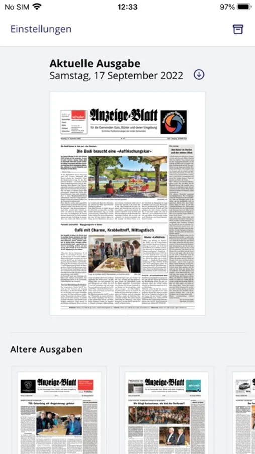 „Anzeige-Blatt“ Tagesausgabe Einzelkauf für CHF 2.00