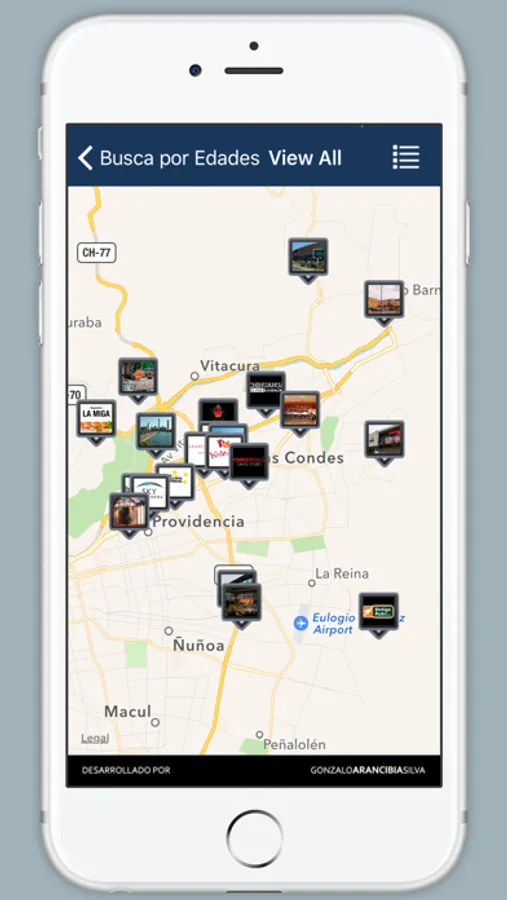 En ella encontrará los mas diversos y entretenidos panoramas que ofrece la ciudad de Santiago de Chile. A través de ella podrás encontrar fácilmente el lugar perfecto para ocupar tu tiempo libre cuando sales de casa, entregándote datos de interés de Pub's, Restaurantes, Lugares de Interés, Parques, Bibliotecas, Academias de Baile, Museos y muchísimo mas.