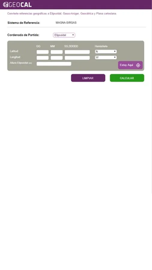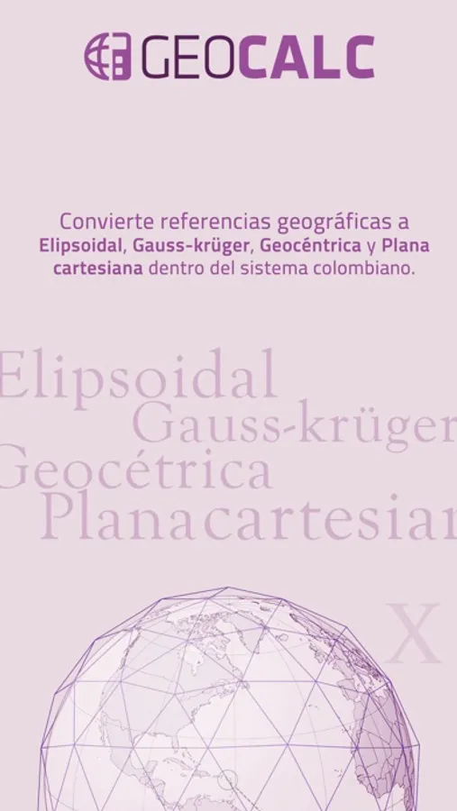 La calculadora favorita para topografía y geodesia. Convierte referencias geográficas a Elipsoidal, Gauss-krüger, Geocéntrica y Plana cartesiana dentro del sistema colombiano.
