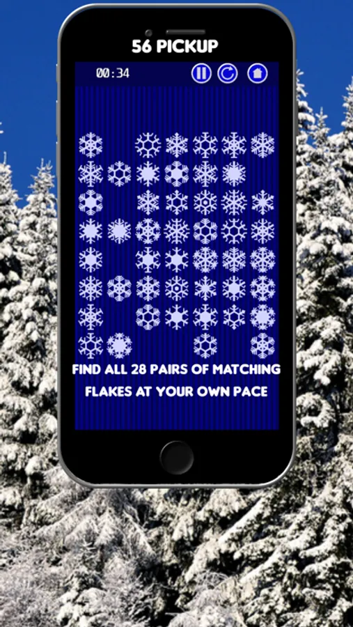 - 56 Pickup, where you can casually clear the board by finding the 28 matching snowflake pairs. This one has grocery store line written all over it.