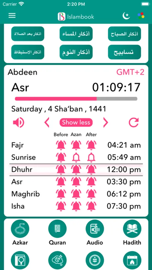 Muslim Azkar, Quran, Hadith, Quran Tafsir, Dreams Interpretation, Prayer Times, Recitation, Qibla Direction, Hijri Calendar and Islamic Events, and Mosque and Halal Food Finder.