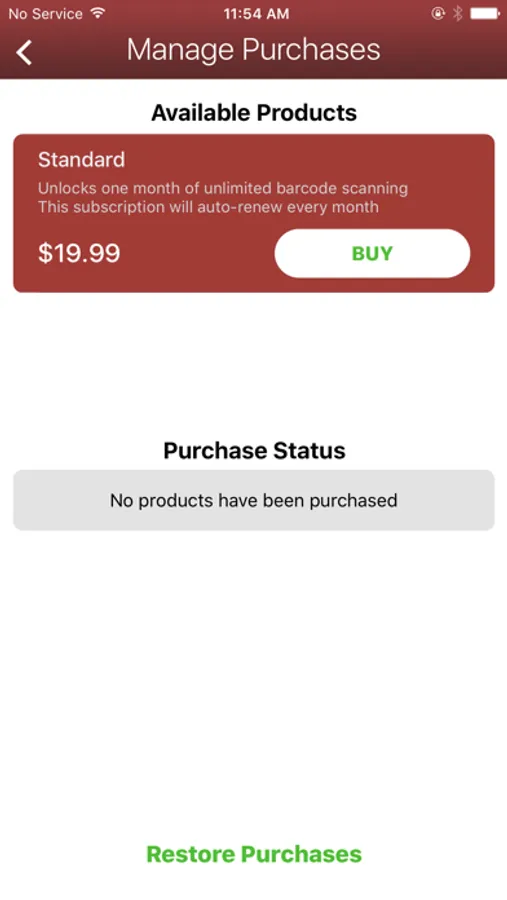 CortexID provides 50 free trial scans to try out the barcode scanning capabilities. If you like the product, you can purchase a Standard auto-renewing subscription that provides unlimited barcode scanning for the price of $9.99/month. Your subscription will automatically renew each month and be charged to your iTunes account within 24 hours of the end of the current period, unless auto-renew is turned off at least 24 hours before the end of the current period. You can turn off auto-renew at any time from your iTunes account settings. Refunds will not be provided for any unused portion of the current term.