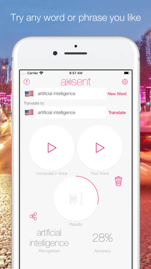 3. Tap 'Results' to get a score of your pronunciation