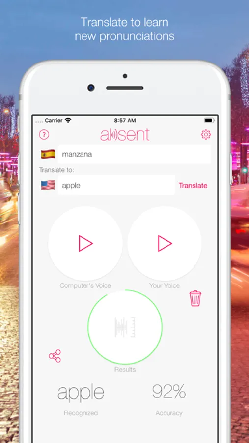 Aksent will help you improve your pronunciation in order to shed that accent! It is great for teachers, students or actors learning foreign languages.