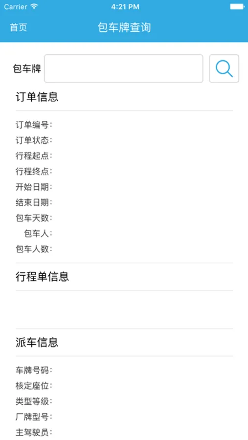 1、为全疆旅游包车企业提供订单查询、人员查询、包车牌查询、车辆查询功能。